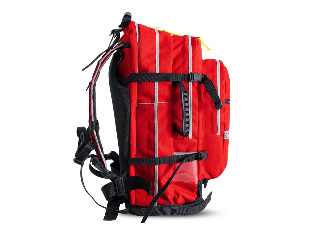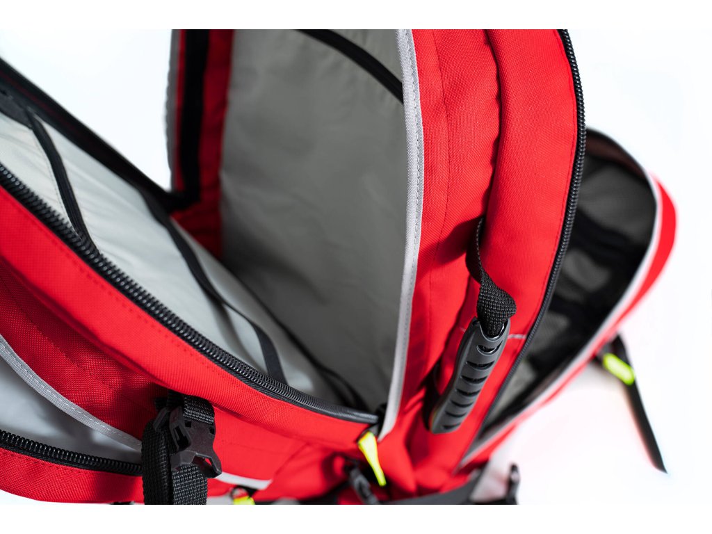 Batoh je doplněn reflexními prvky, které výrazně zlepšují viditelnost záchranáře v noci.