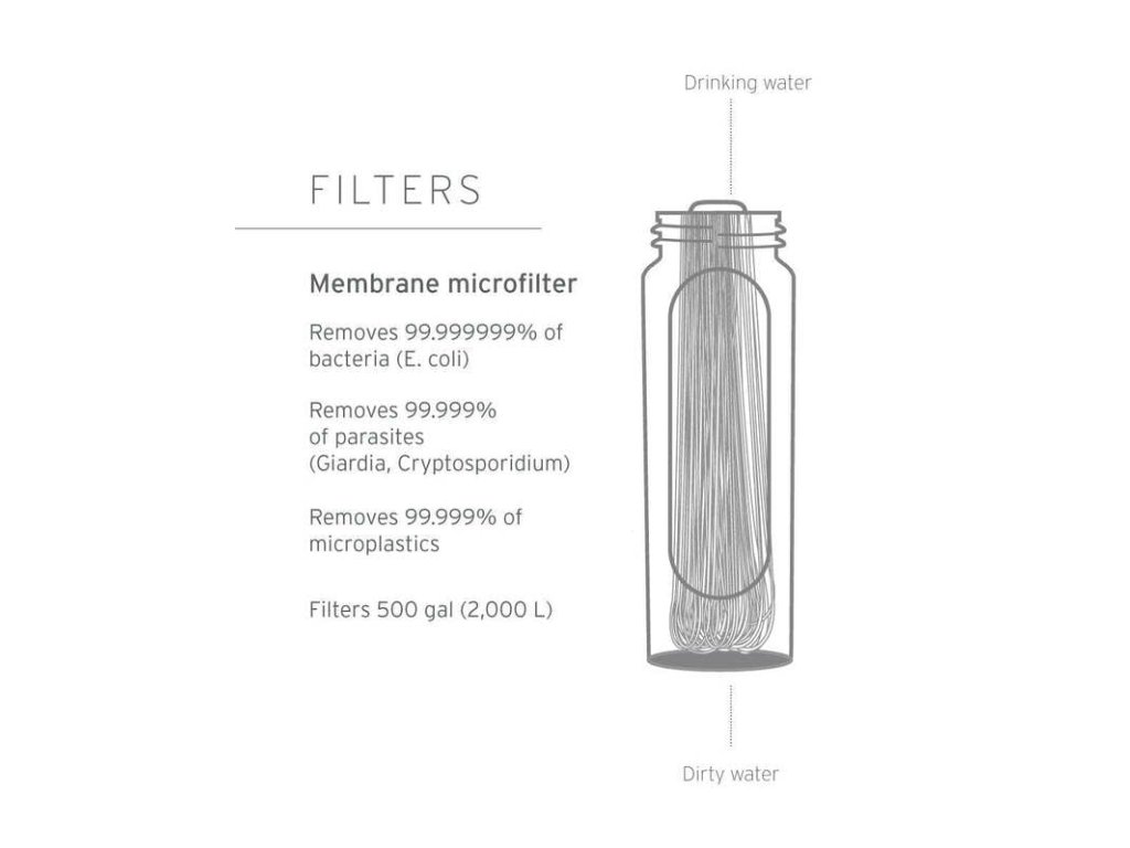 Všestranný design pro dobrodružství, turistiku či trailový běh. Chrání před 99,999999% bakteriemi, parazity, mikroplasty, bahnem, pískem a zákalem.