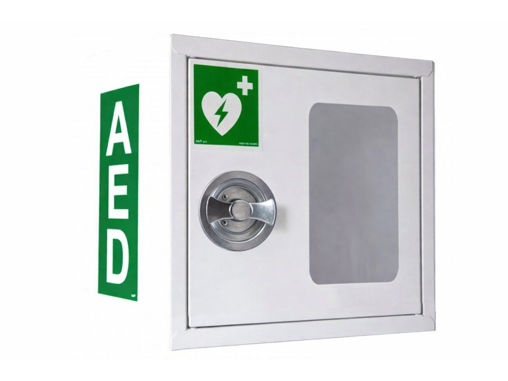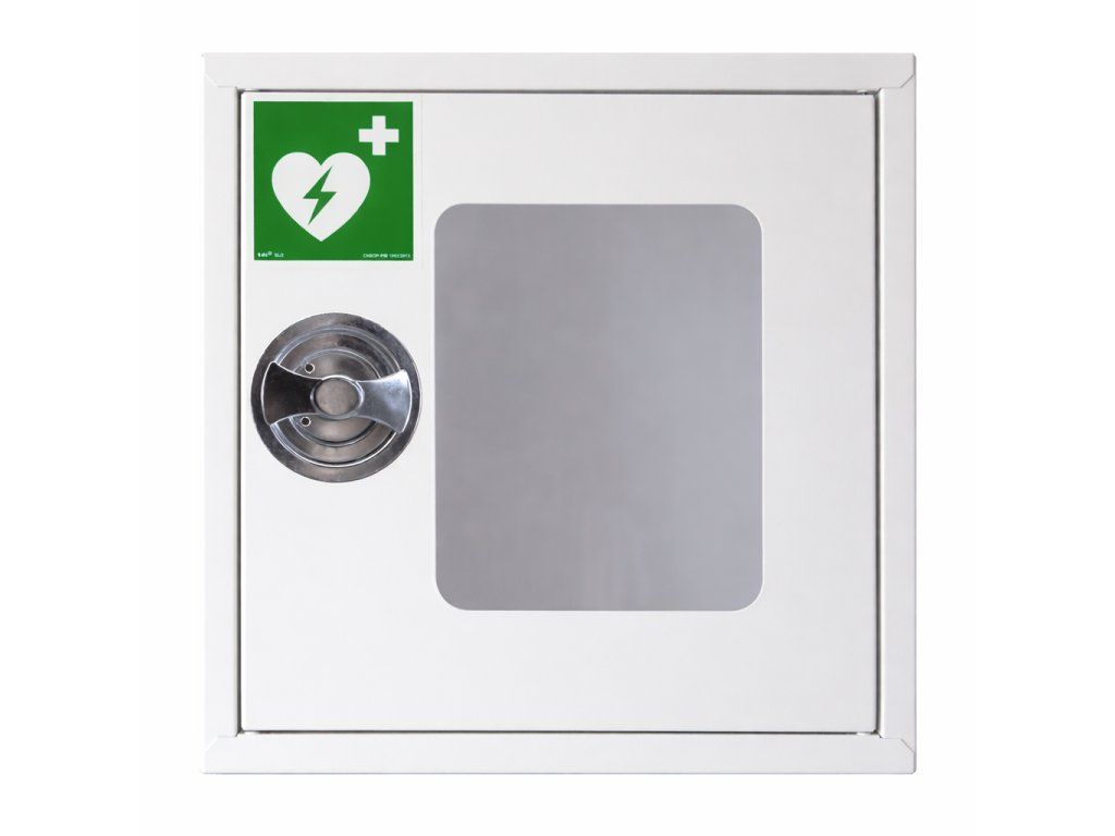 Skříňka na defibrilátor (AED) s alarmem, madlo