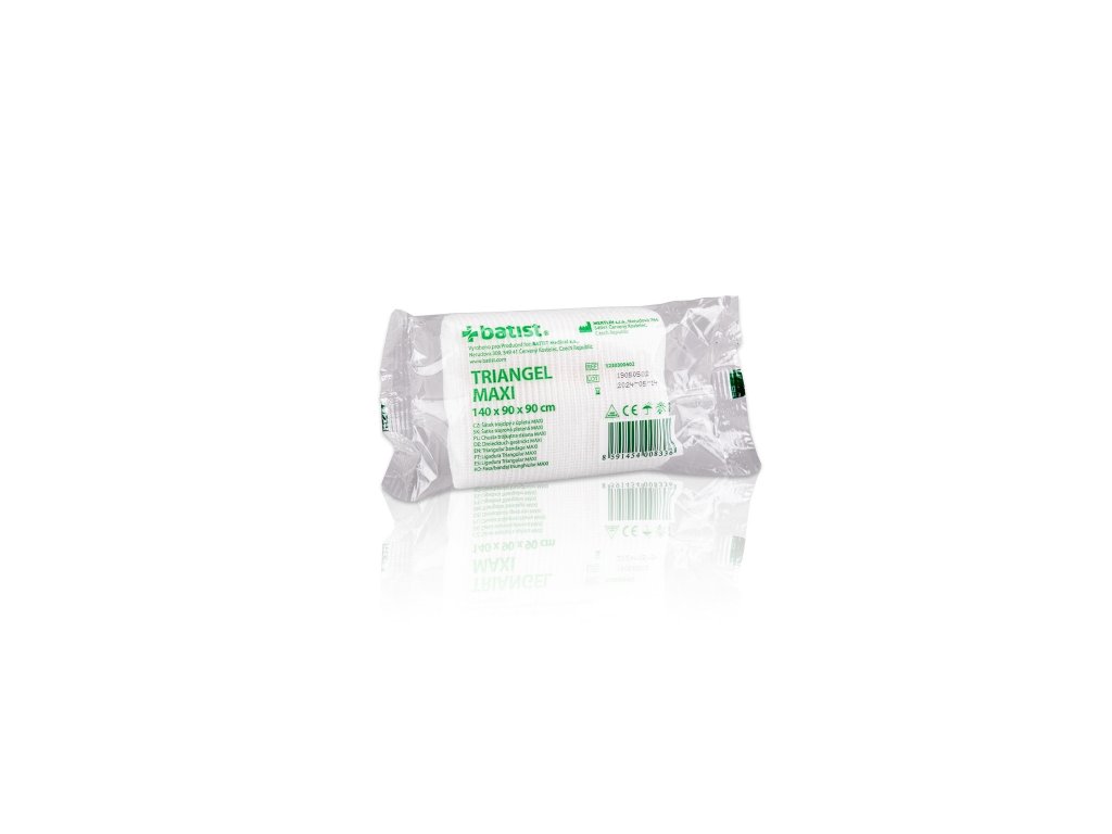 Šátek trojcípý je vhodný pro fixaci končetin, především paží a hlavy při zhmožděninách a zlomeninách.