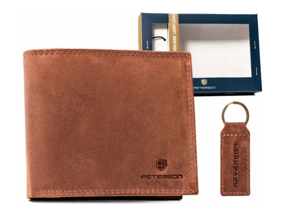 Dárková sada: Pánská kožená peněženka a klíčenka - Peterson