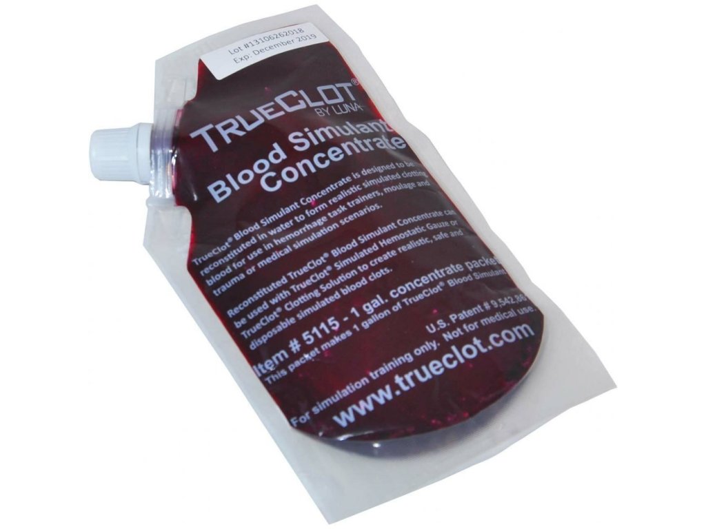 Koncentrát TrueClot Blood Simulant byl navržen tak, aby měl nižší přepravní hmotnosti a zabíral méně úložného prostoru než náš předem namíchaná umělá krev. Namíchaná umělá krev TrueClot lze použít s tréninkovou hemostatickou gázou TrueClot nebo s roztokem srážení TrueClot k vytvoření realistických, bezpečných a jednorázových krevních sraženin.