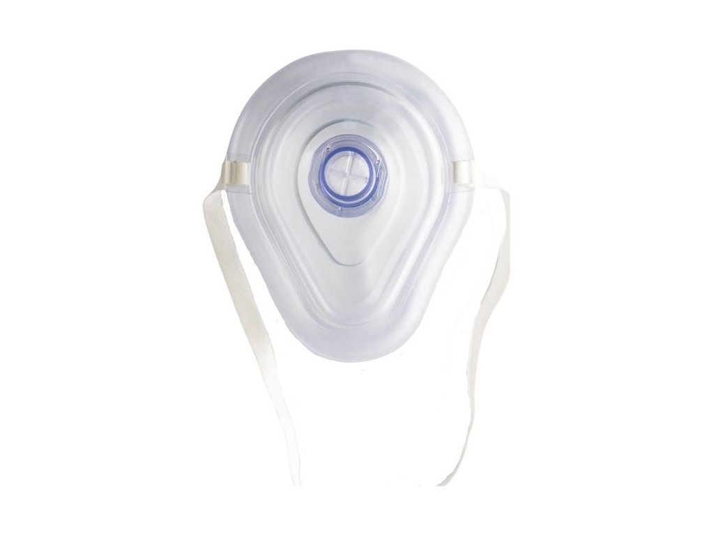 Je vyrobena z čirého PVC, které umožňuje sledovat dýchání pacienta. Měkký nafukovací lem zajišťuje přesné přilnutí k obličeji a správné utěsnění i při pohybu. Pomocí elastického pásku lze masku bezpečně upevnit bez potřeby asistence dalších osob. Dvojí ochranný prvek – jednocestný ventil a bakteriální filtr – zabraňuje zpětnému vdechnut a minimalizuje riziko infekce.