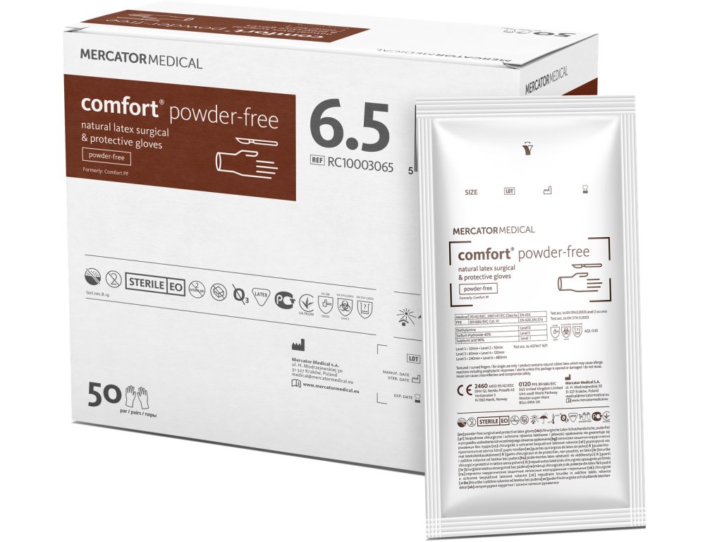 Latexové operační rukavice bez pudru comfort® powder-free EO.