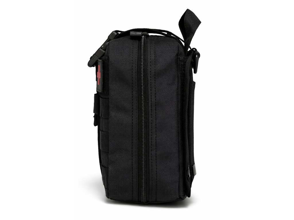 Dvoucestný zip zajišťuje rychlý přístup k obsahu a vnitřní organizér s elastickými smyčkami drží turniket, tlakový obvaz, nůžky a další vybavení bezpečně na svém místě.
