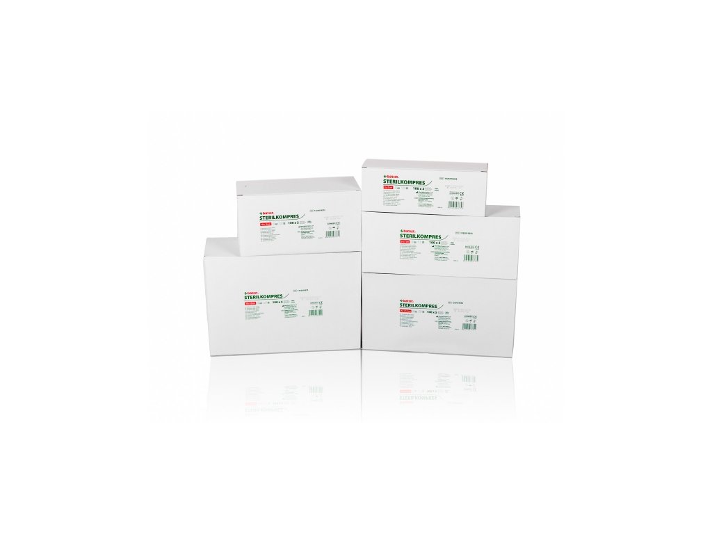 Gázový kompres, 17 nití, 8 vrstev, 10x10 cm, sterilní (2ks/blistr) 100 ks balení